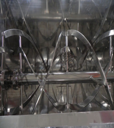 4、正反旋轉螺條安裝于同一水平軸上,形成一個低動力高效的混合環境。平穩的混合過程降低了對易碎物料的破壞,加裝飛刀結構亦起破碎作用,亦可加裝噴液系統。好的將液體和粉體均勻混合。