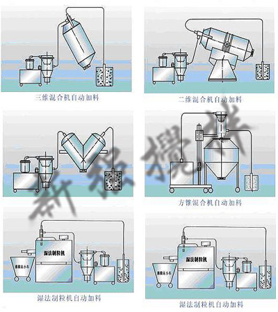真空加料 機能自動地將各種物料輸送到包裝機、注塑機、粉碎機等設備的料斗中,也能直接把混合的物料輸送 到混合機(如V型混合機、雙錐混合機、單錐混合機等)中,減輕了工人勞動強度,解決了加料時粉 塵外溢等問題,是陶瓷、磨料、醫藥、化工、食品等生產的設備。