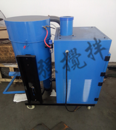 真空加料機中裝有壓縮空氣反吹裝置,每次放料時,壓縮空氣脈沖反吹過濾器,把吸附于過濾器 表面的粉末打落下來,以保證吸料能正常運行。